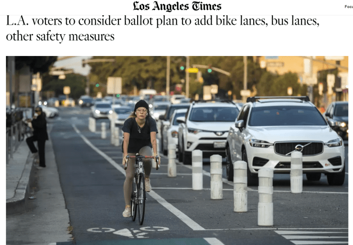 Measure HLA, also referred to by proponents as Healthy Streets LA, asks voters to require the city to redesign streets to be safer for pedestrians and bicyclists. Sounds like a good thing, right?