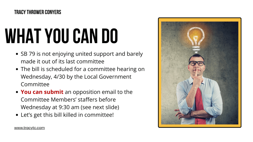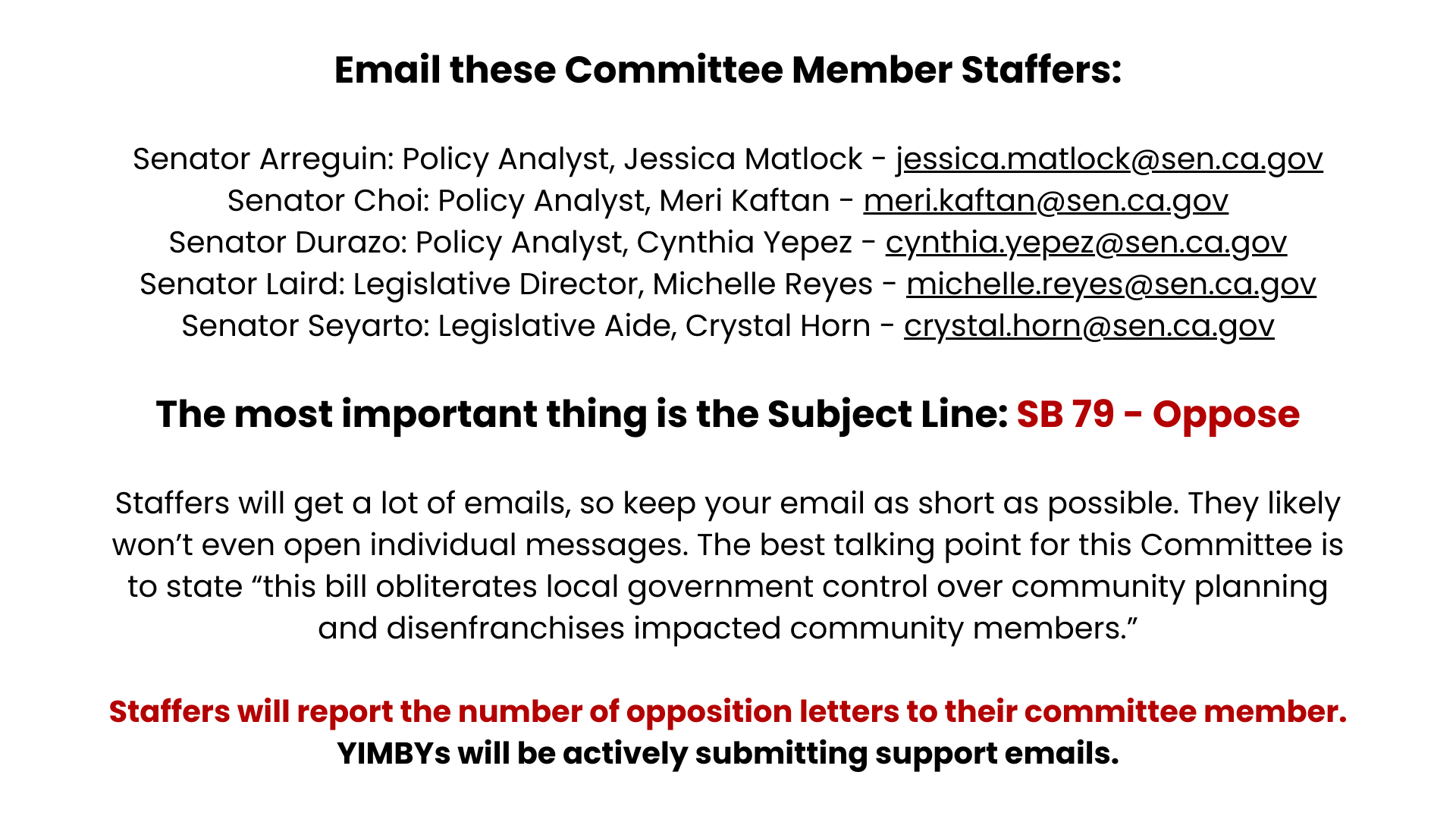 SB-79 has zero redeeming qualities. Call your assemblyperson stat and let them know you oppose SB-79, and that you will actively campaign against them if they support the bill.