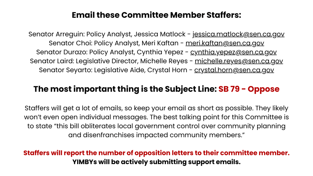 SB-79 bypasses local zoning and local control of development (the projects must be allowed no matter how bad for the community)