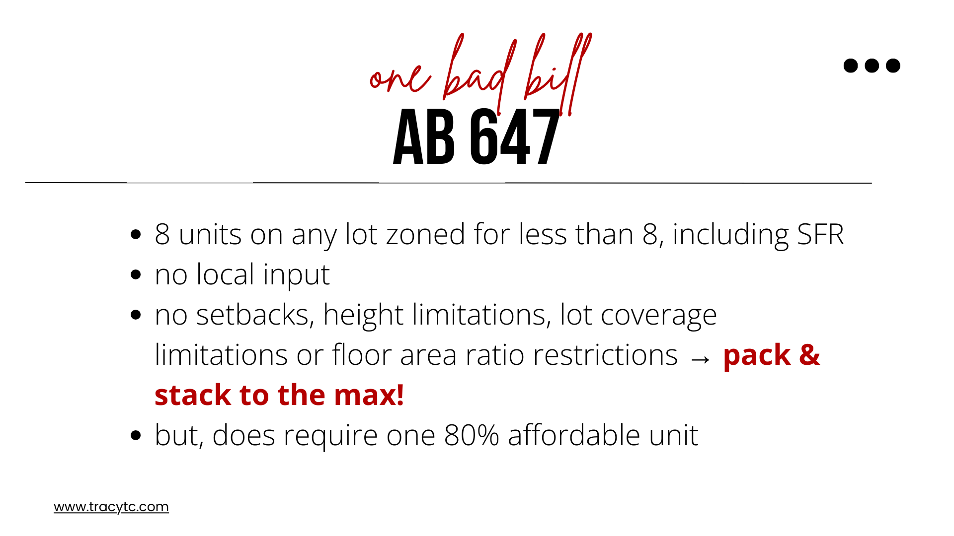 SB-79, that terrible bill that wants to put 15,000’ high-rises on the 5K’ lot next door.
